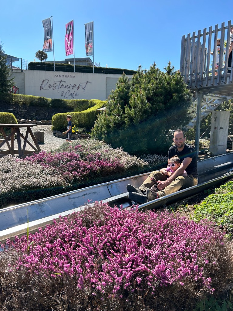 Uiteraard vind je ook horeca op de berg! Wij hebben meerdere keren gezeten bij het Panoramarestaurant. Dit restaurant kun je niet missen, want het zit tussen de rodelbaan en de speeltuin in. Het leuke aan dit restaurant is dat de rodelbaan onder het terras door roetsjt en binnen is een speelhoek voor kinderen. Ideaal!